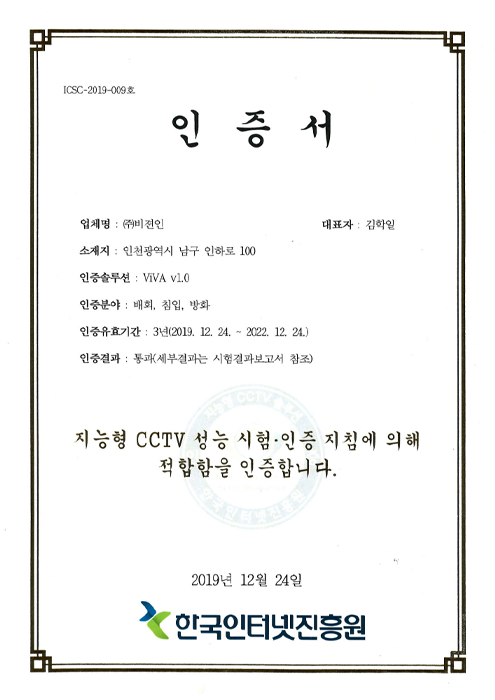 인증서: 배회, 침입, 방화 보유업체: (주)비젼인